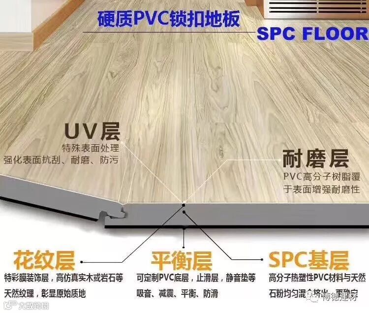 SPC地板被认为是新一代的地板材料,SPC地板表面不会有孔,不会渗水;拼接后不会有缝,沾染污渍后,用抹布轻轻擦试,即可轻松清理,不会留下难以除去的印记,也不需要用特殊养护产品保养。它可供选择的花色图案众多,适用于室内家装,酒店,医院,商场等公共场所。