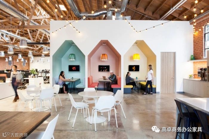 创意性的办公空间设计一般都是更明亮、更有活力的颜色体现风格独特的企业文化,决策者的气度和风范,公司的集体形象,公司的历史发展,甚至有的时候会归结于公司的产品特点。