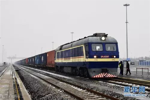 △2016年11月21日,天津—明斯克中欧班列停在天津自贸区东疆片区海铁中心站内。