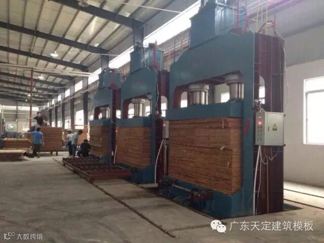 经过涂胶铺设好的模板层,通过热压工艺进行压平。传统的加热时采用了锅炉水传到热进行加热,现代化设备室采用了电加热,压平后,可以增加建筑模板的密实度,成型比较规则,提高了模板的使用质量。采用先预压再热压的工艺,最高程度降低坯板错位的几率,再施以合理的压力和温度热压,保证了每一张建筑模板均有卓越的胶合强度和硬度。