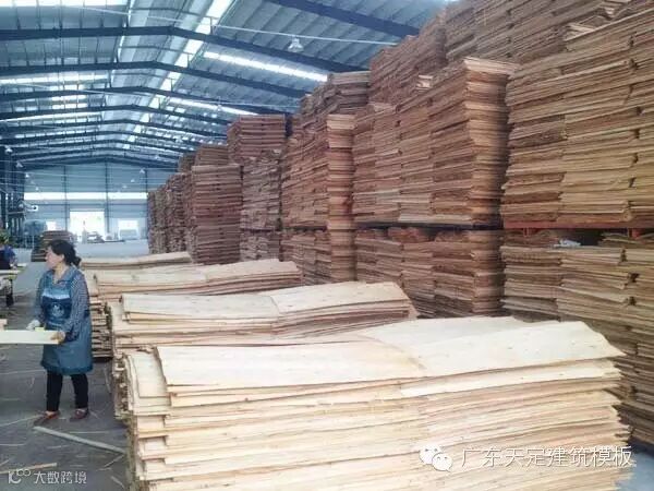 原材料是根据原木进行层切割得来的,将原木按照一定的层厚度进行水平面的切割旋切,根据模板的尺寸大小才裁切成比例相同的木层,并且将木层表面的杂志进行清除,杂志可以影响后期胶的粘结牢度。