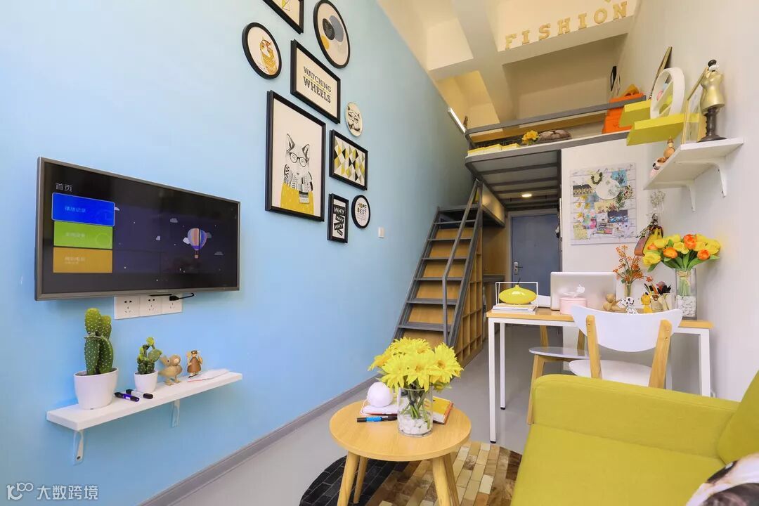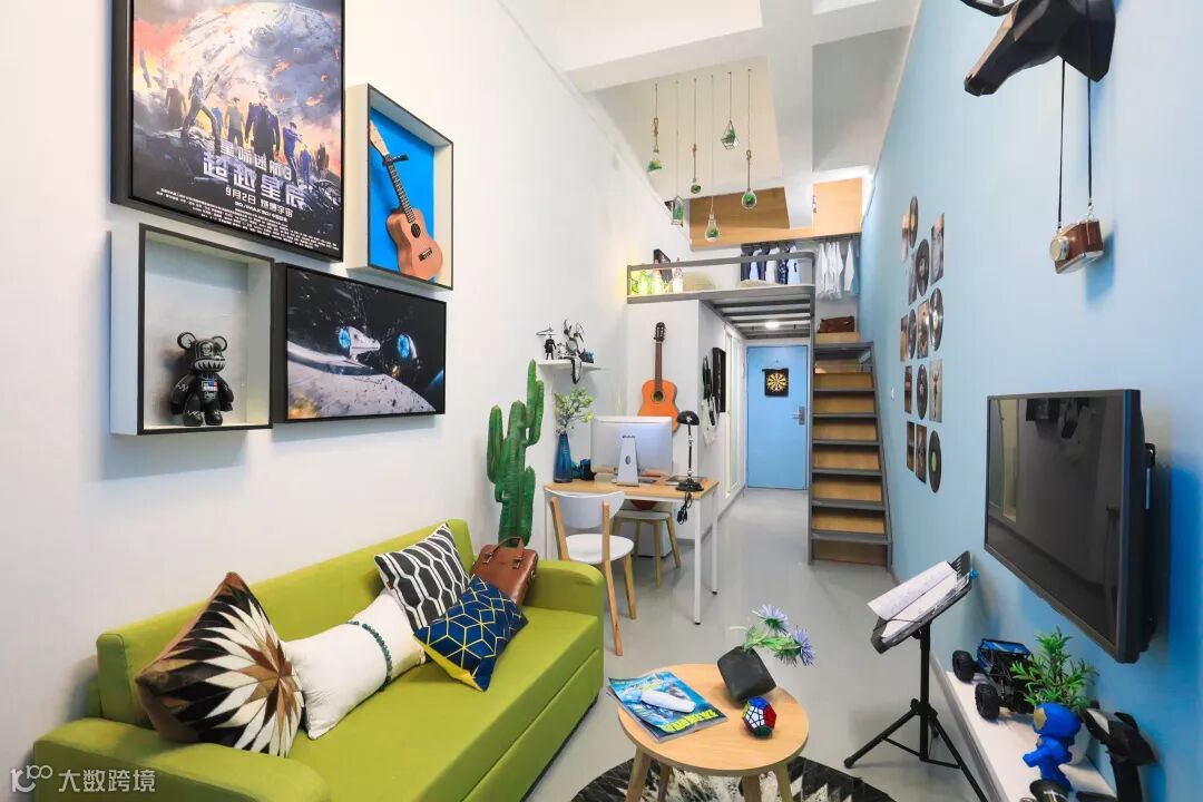 YT公寓基本上是loft户型,户型上主要分为小loft和大loft,小loft一层是客厅,二层则是卧室。大loft一层客厅卧室一体,沿着楼梯走上去,有一个隐蔽而又安静的房间,可以将这个房间做成卧室,也可以做成储物间或秘密花园不被打扰。