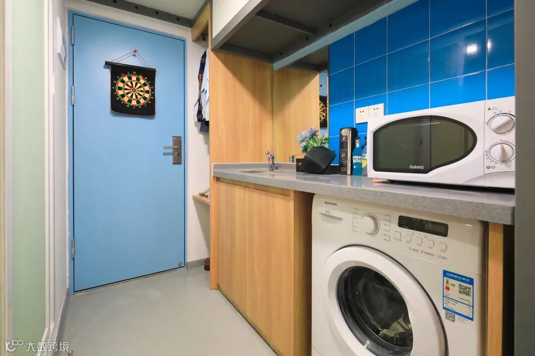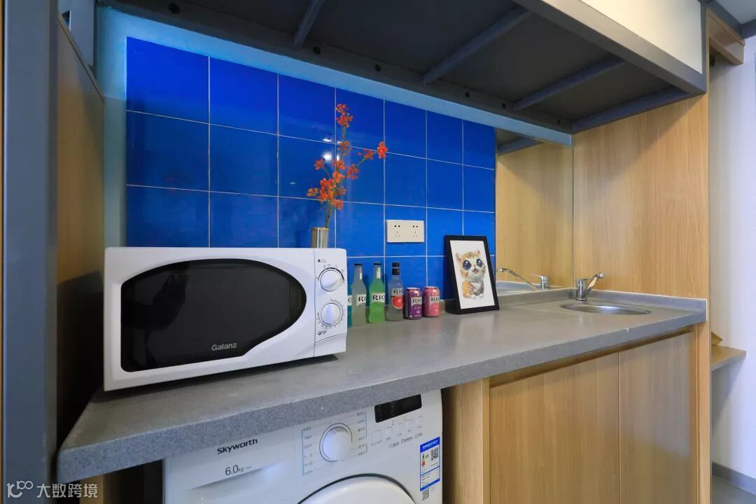 每个房间都有配一个厨房台,可以满足我们做一些沙拉,用微波炉做一些简餐的需求,或者泡杯茶、放些酒都挺好,洗手间的规划采用日本公寓酒店最流行的整体卫浴、功能完备。
