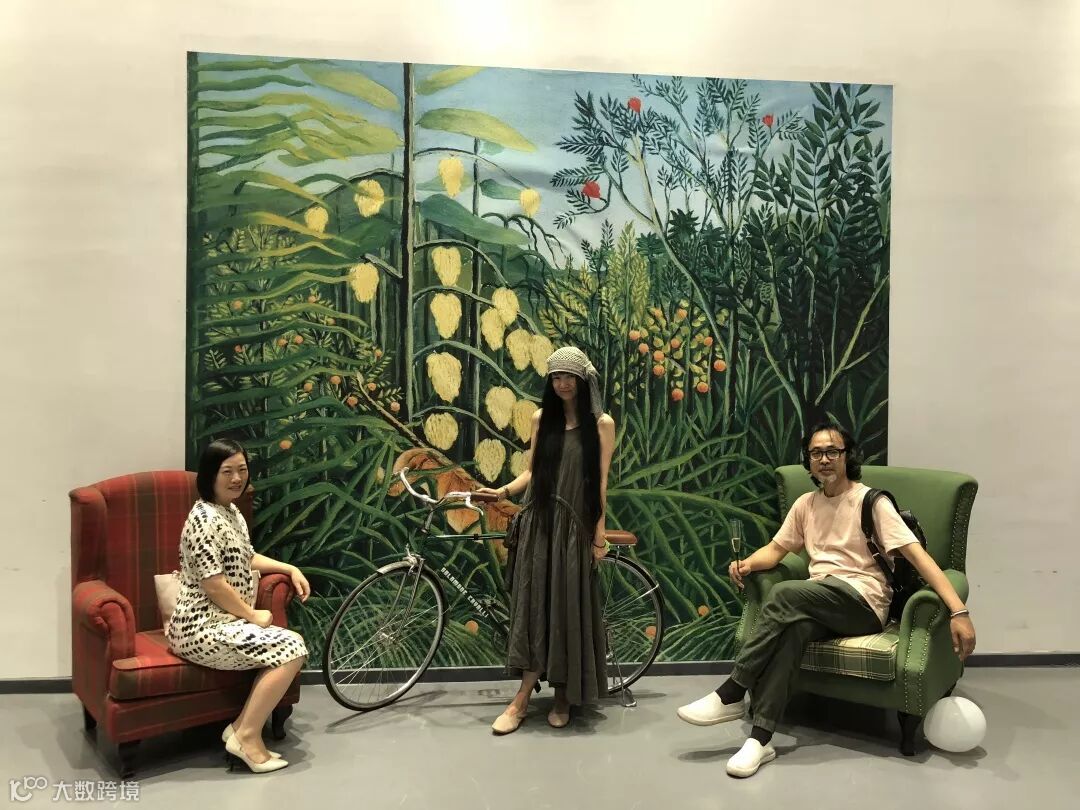 来宾在卢梭艺术背影墙前打卡,并且大俗升美专业摄影师拍照,为当晚的艺术酒会留下纪念照。