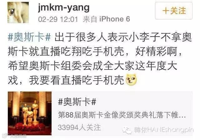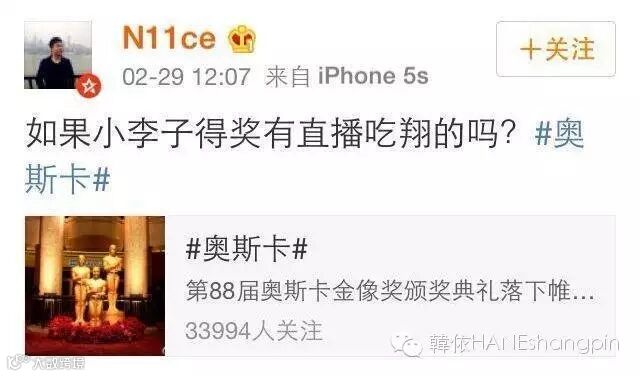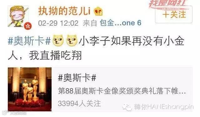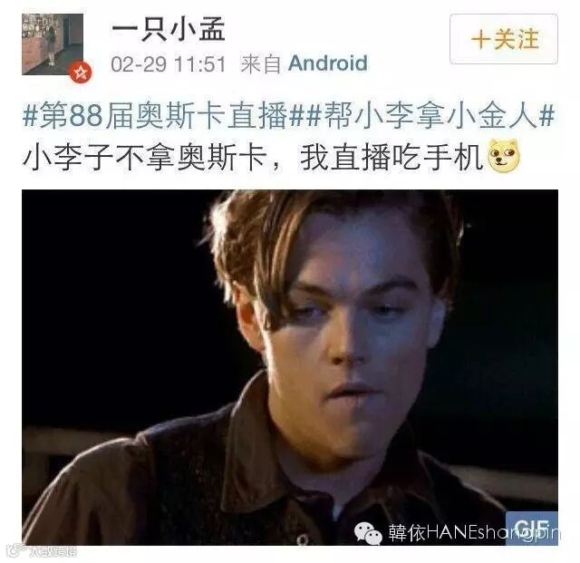 当然,中国人民也在密切注视着小李子