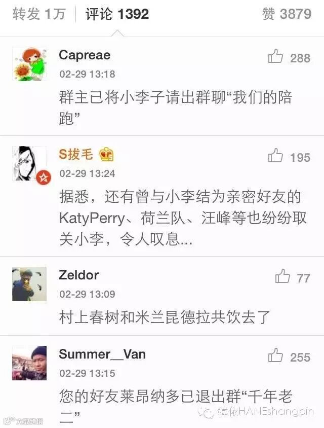 据说小李子已经被阿森纳,梅西,凯蒂佩里,汪峰,等一系列陪跑天王天后和各种陪跑交流群拉黑,移出群组了