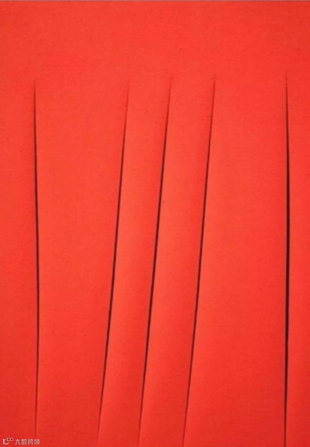 这幅让人想起客厅里红色窗帘的画作,来自艺术家Lucio Fontana。而这幅画的成交价格是150w美元!