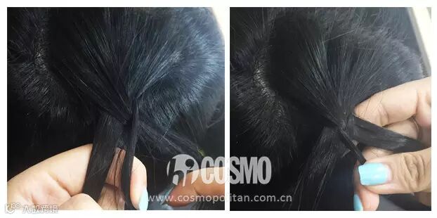 4/ 编了一段长度你会发现基本成型,不过还需要随时把一些发丝拉蓬松。