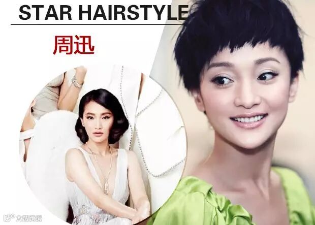 VOGUE杂志封面也请来女神周迅,她的侧分复古波波头造型优雅贵气,但是跟她之前的清新短发造型相比整个人老气了不少。