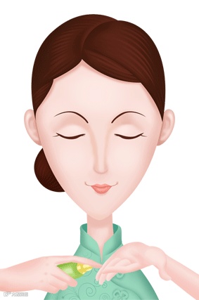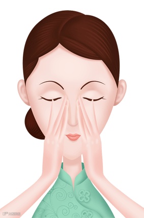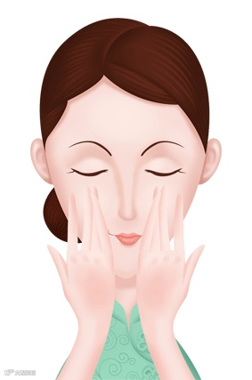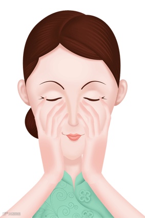 2、由下巴到耳侧,由鼻翼到耳中,颧骨到太阳穴,由额心往两侧横擦,再顺着鼻梁从上往下轻拭,鼻梁两侧和上唇处,来回轻试,从下巴往两颊提拉。