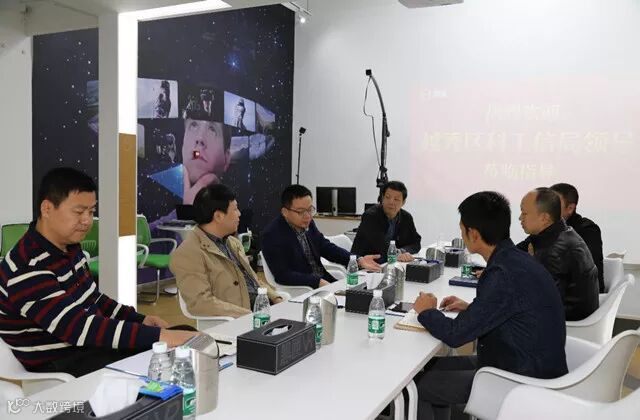 11月21日越秀区科技工业和信息化局局长和六榕街书记陈学明一行来访参观,由黑匣向总介绍云顶同创汇园区及黑匣基本情况,后到黑匣展厅进行体验及座谈。
