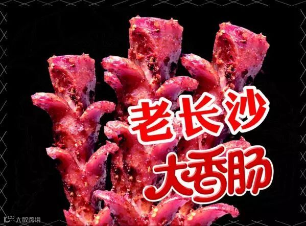 大香肠是长沙著名小吃,由湖南香肠改良而来。将香肠放置在油锅中炸制开花,蘸取特制辣椒粉后,具有色泽明亮,香味醇厚,鲜味可口,皮薄肉嫩的特色 。老长沙大香肠形以大为奇,拿在手上回头率极高,天然传播力十足。