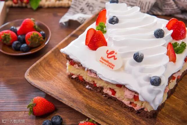 配料:原味蛋糕胚、甜奶油、巧克力片、新鲜水果
