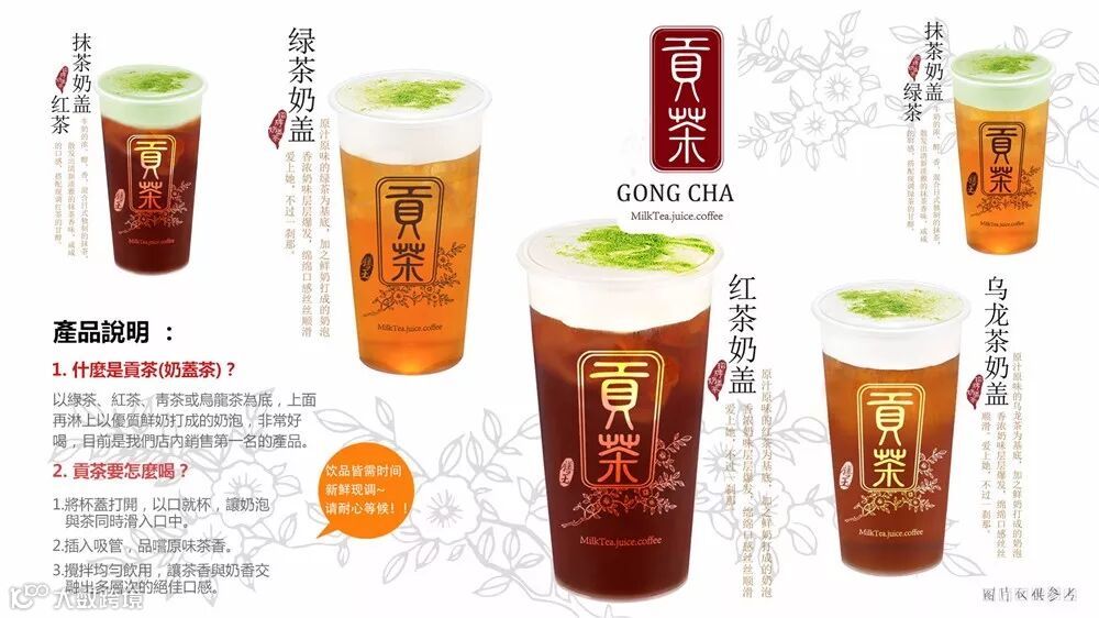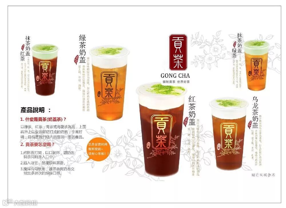 以绿茶,红茶,青茶或是乌龙茶为底,上面再淋上以优质鲜奶打成的奶泡,非常好喝,是目前我们店内销售第一名的产品