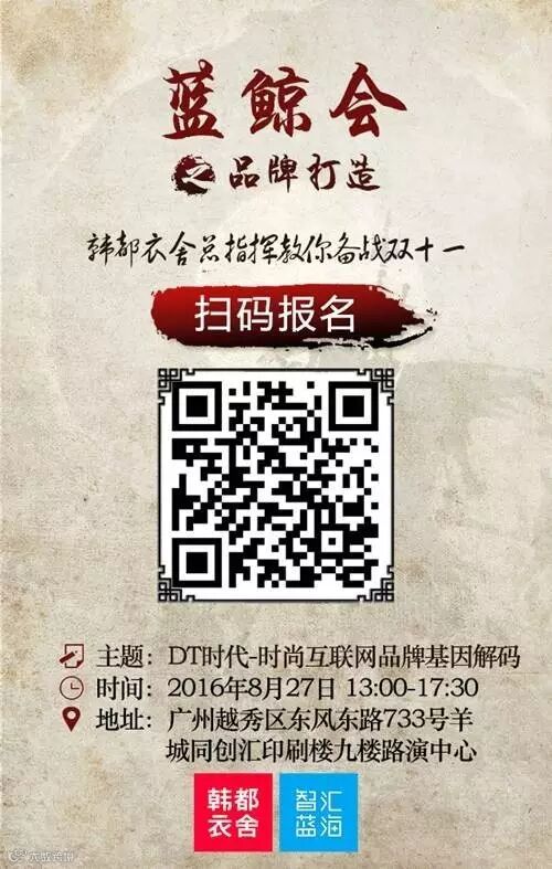 8月27日,由韩都衣舍.智汇蓝海主办的《DT时代-时尚互联网品牌基因解码》行业分享会即将在广州羊城同创汇举行。