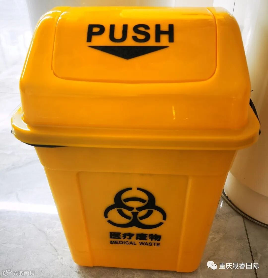 重庆晟睿国际为减轻环卫的医疗垃圾分类工作,相应社区号召,主动配备了专业的医疗废物处理垃圾箱。