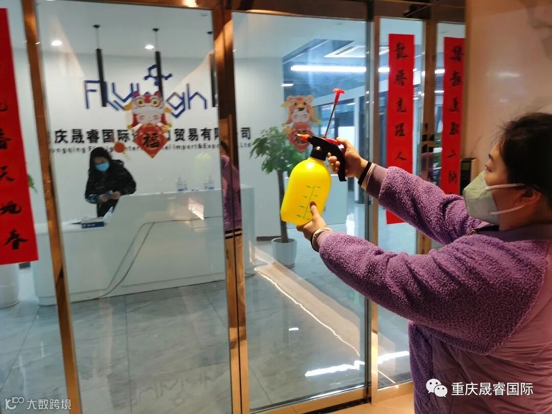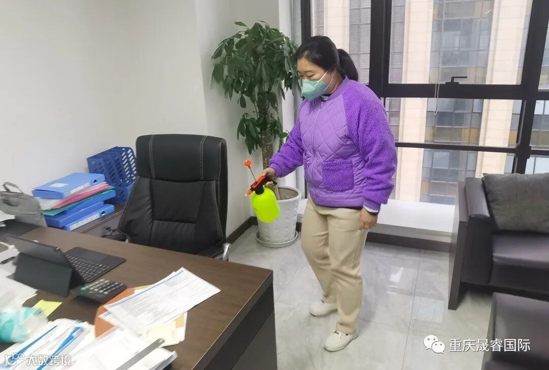 行政人事主管张媛媛正在办公室做详细的消毒卫生工作。虽然空气中有淡淡的消毒水味,但这是让人安心的味道。