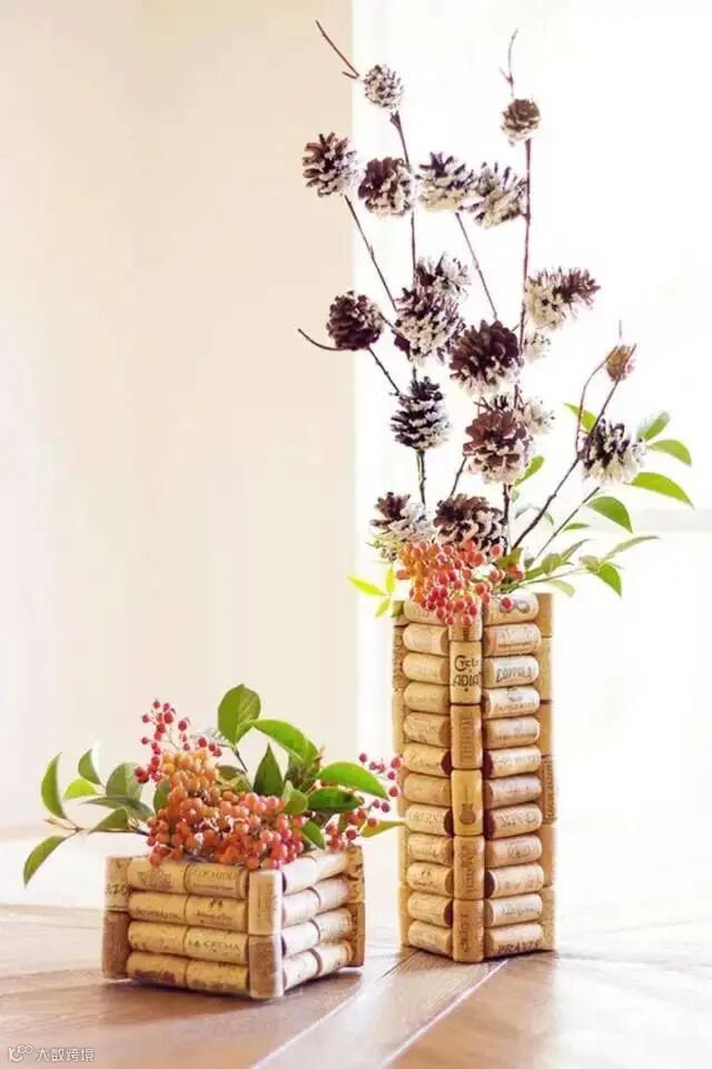 如果你的葡萄酒是用软木塞作为瓶塞的话,可以做的事那就太多了。本身软木塞看起来就很偏木质文艺范儿,要是利用点小创意将它们组合一下,可能会有意想不到的惊喜哦!