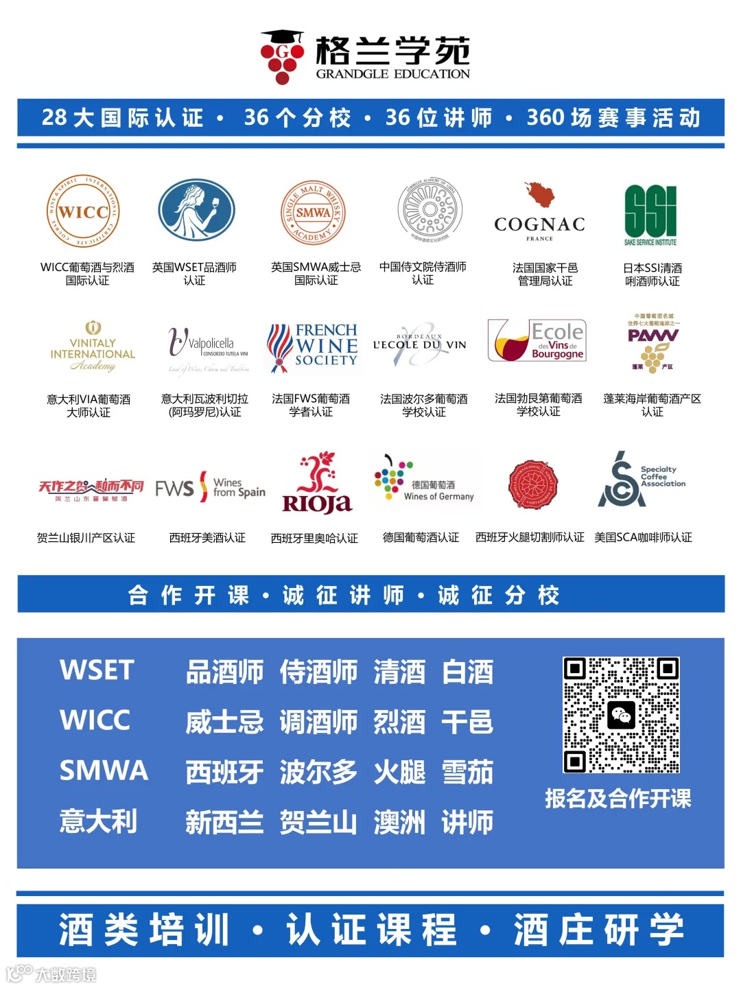 格兰学苑为WSET的特许授权培训机构(Approved Programme Providers 简称APP)(APP编号1614)。