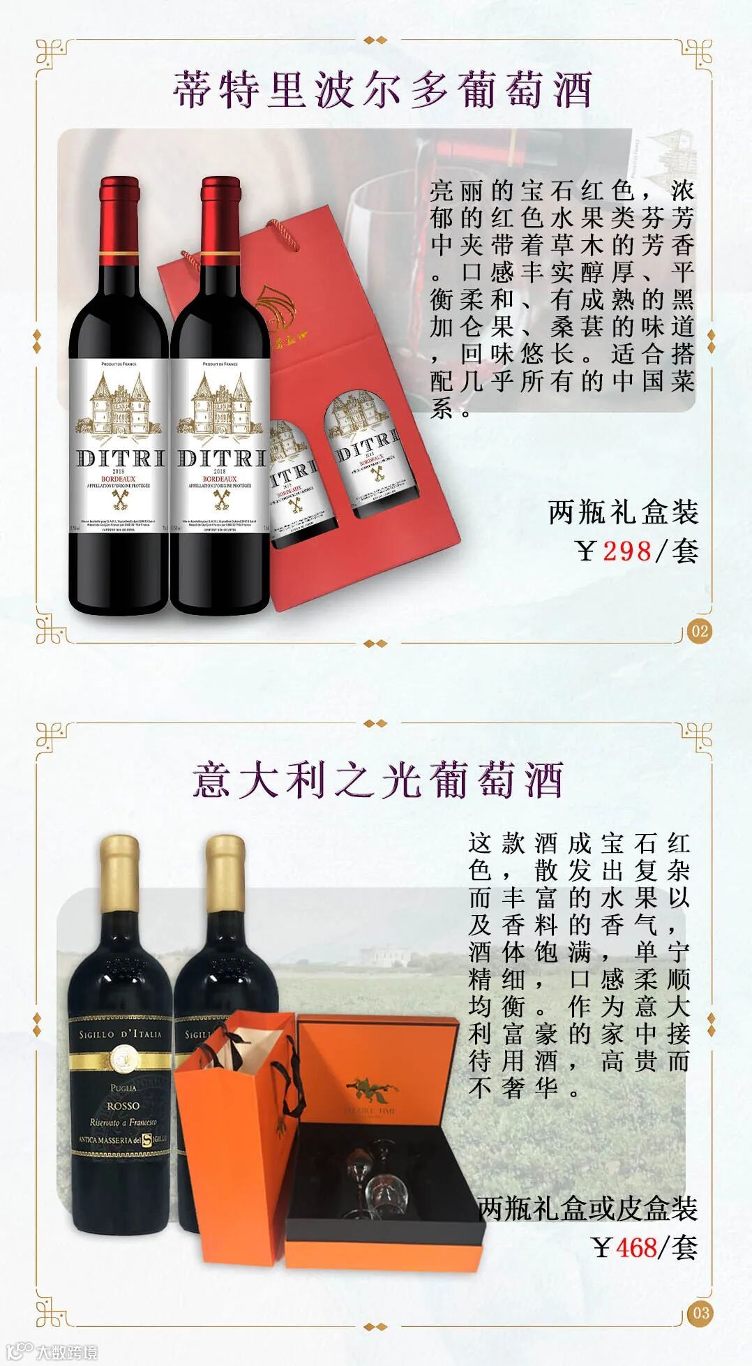 所以过年,葡萄酒、白酒、礼盒都要配齐,这样走亲访友带出去才有面子,今天,主要给大家介绍一下我们精心准备好的葡萄酒礼盒以及白酒,需要送礼的朋友们有福利了!