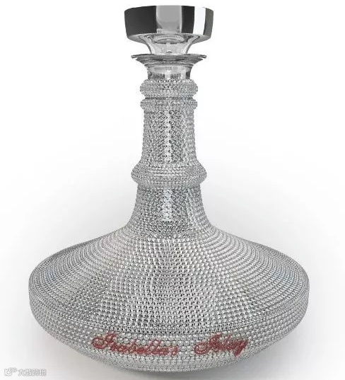镶嵌其中。瓶身上还镶嵌有1.5万颗钻石,总计500克拉。