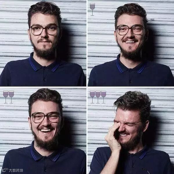 在喝完1杯、2杯、3杯之后的表情变化。