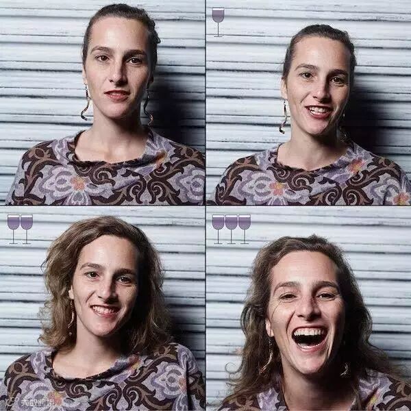 马科斯的这组迷人图片真实反映了人们在几杯酒下肚后的明显变化,正如人们想象的那样,当这些人喝下半瓶酒后,已经开始有些摇晃晕眩了。