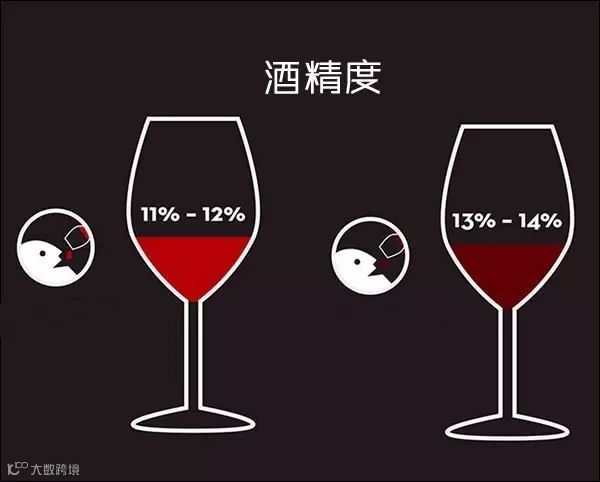 1.不同风格的葡萄酒类型,所处的度数区间不同