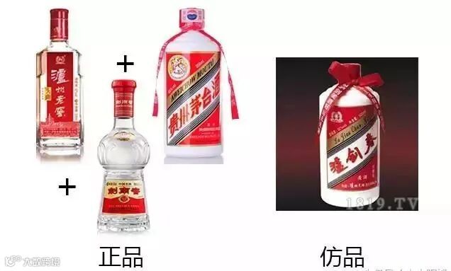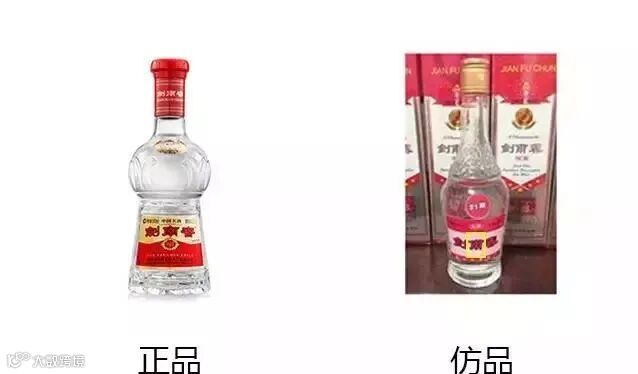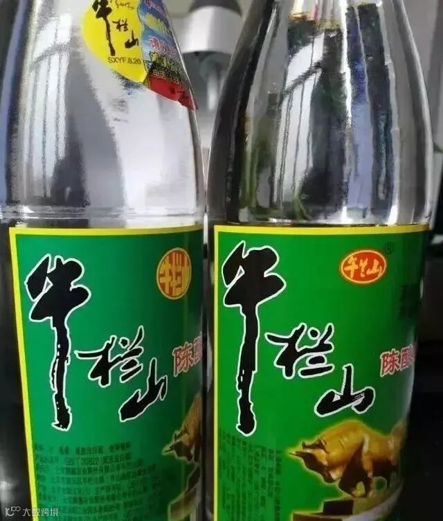 看下图,不仔细看还以为是一模一样的两瓶酒,标签、图案都相近。仔细一看,左边的是牛栏山,用的商标也是牛栏山;右边的可不是牛栏山,而是午栏山,用的商标是午兰山。