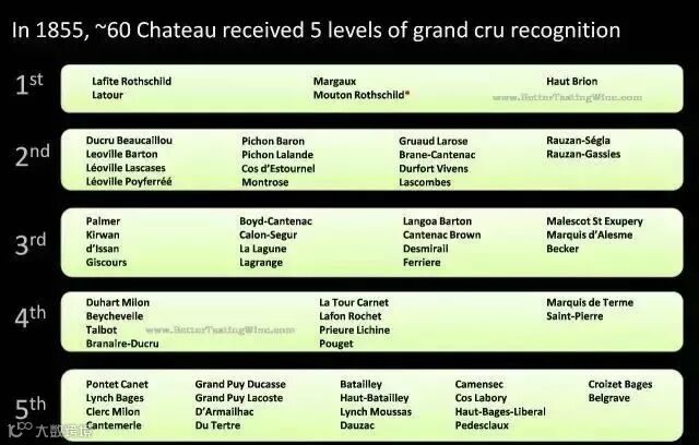 看葡萄酒的分级:总体上法国葡萄酒的品质随着级别的提高而越好。