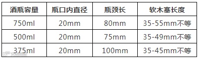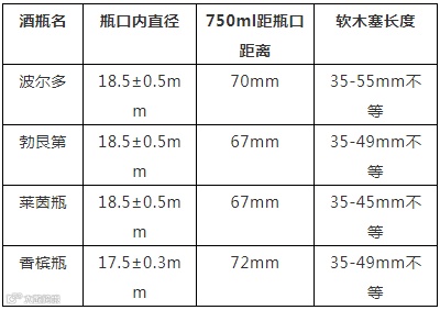 同时,如果同一个容量大小的酒瓶,酒瓶形状不同,软木塞的大小尺寸也不同——
