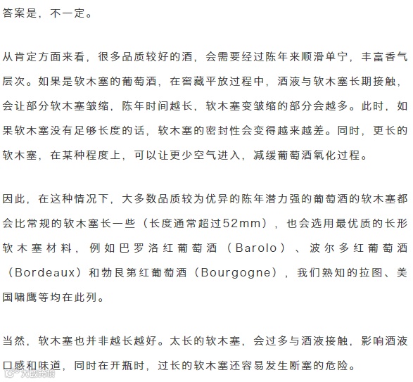 软木塞越长,酒的品质越高,酒越好喝吗?