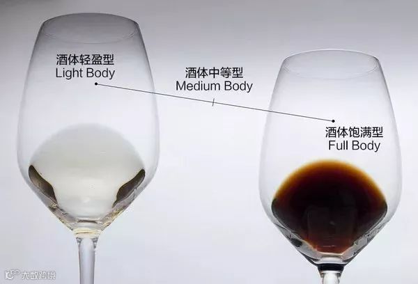 酒体(wine body),人既然有肉体,那酒的肉体就被称为“酒体”,和我们的环肥燕瘦一个道理,是指:葡萄酒带给口腔一种或轻或重或淡或稠的感觉,主要由舌头感知葡萄酒在舌头上的“重量”和”质量“。