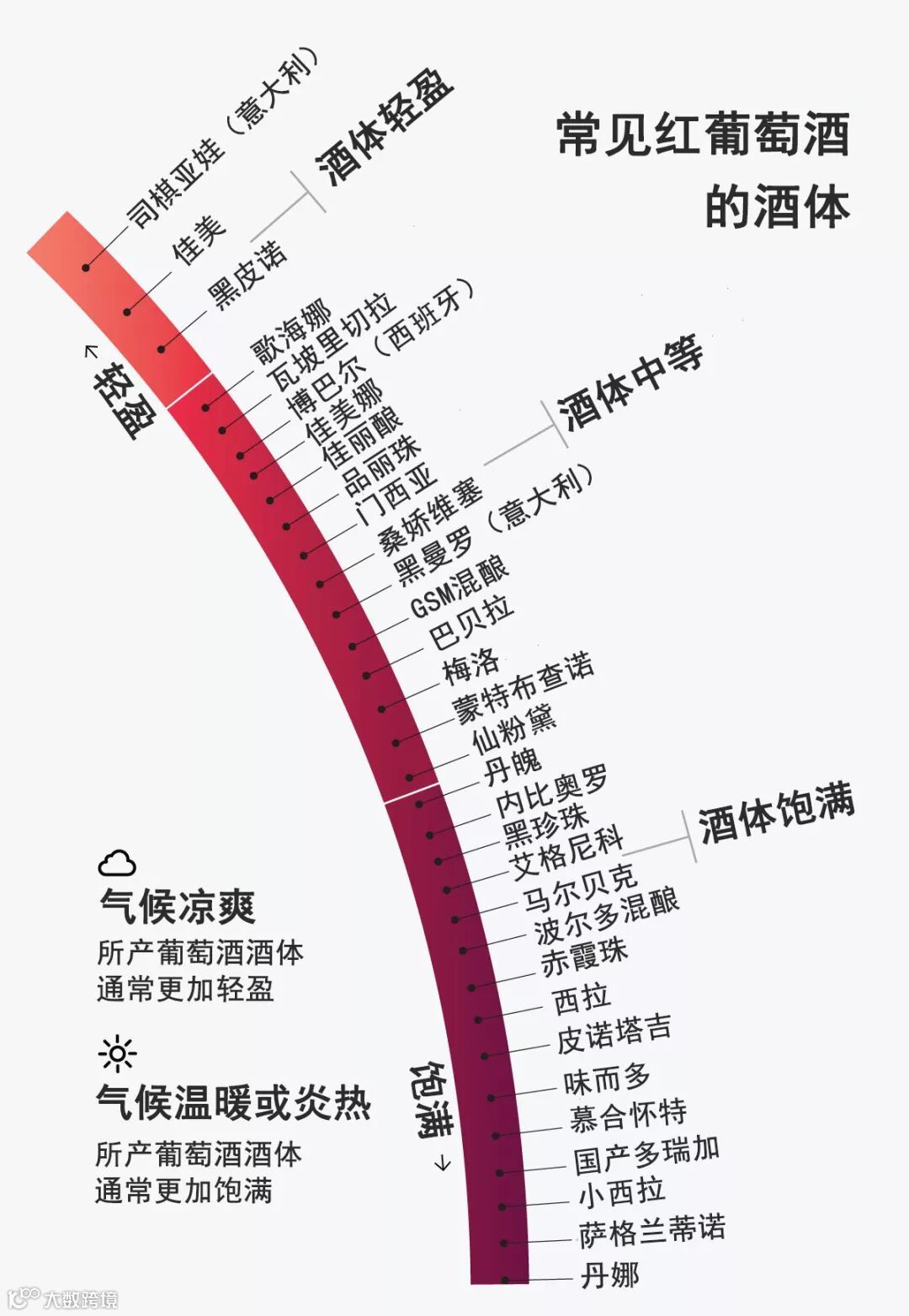 其实,有人喜欢酒体丰满、口感厚实的葡萄酒;有人则喜欢酒体中等、口味协调的葡萄酒;还有人喜欢简简单单、酒体轻盈的葡萄酒。同样,有人爱李纹般的性感火辣,有人爱高圆圆般的身材匀称,还有人爱赵飞燕般的身轻如燕。总之,萝卜白菜各有所爱。这种口感存在的本身就是让口腔感到舒服,所以酒体与酒质真的没有什么关系。