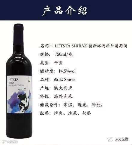可口易饮,适合牛排、烤肉、羊排、猪排、红烧肉、樟茶鸭等红肉或稍显肥硕的肉类于烤红肉、炖菜和香气浓郁的奶酪搭配。