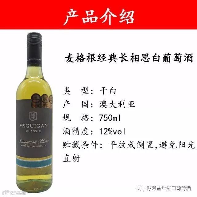 品酒师推荐:麦格根经典长相思白葡萄酒酒液呈明亮的淡黄绿色,经典的长相思香气,夹杂着百果香的果香,圆润饱满,酒体平衡。搭配白肉、鱼肉、海鲜更佳。