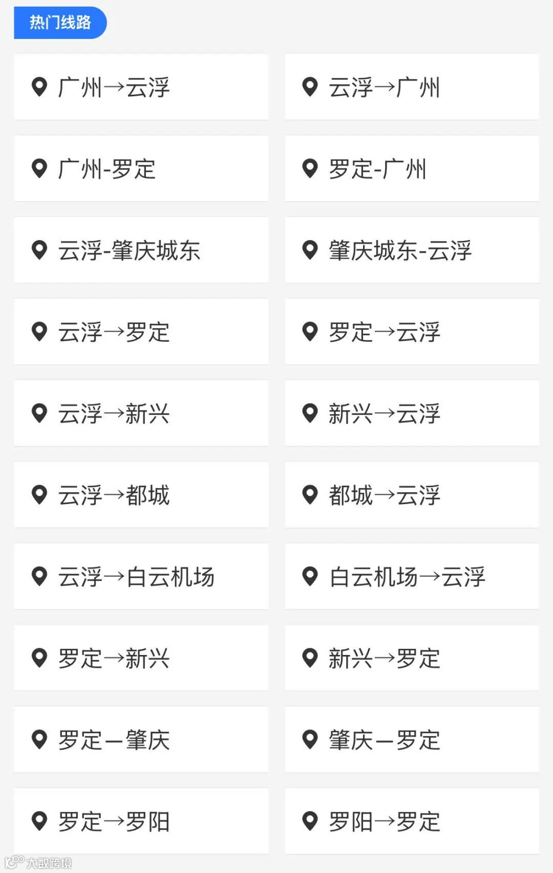 云浮往返广州白云机场、云浮东往返云城区、新兴、罗定、郁南、
