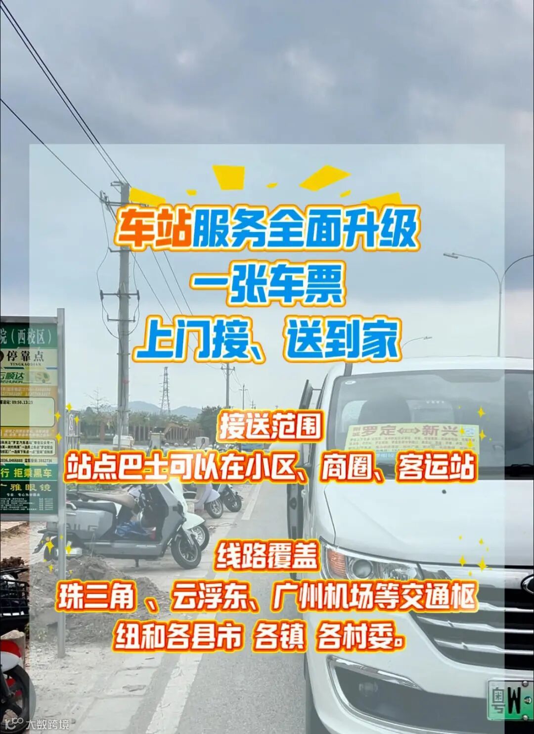 服务全面升级,一张车票上门接,送到家。站点巴士,在小区、商圈、客运站都可以上、下车。线路覆盖珠三角,云浮东,广州机场等交通枢纽,同埋各县市各镇各村委~