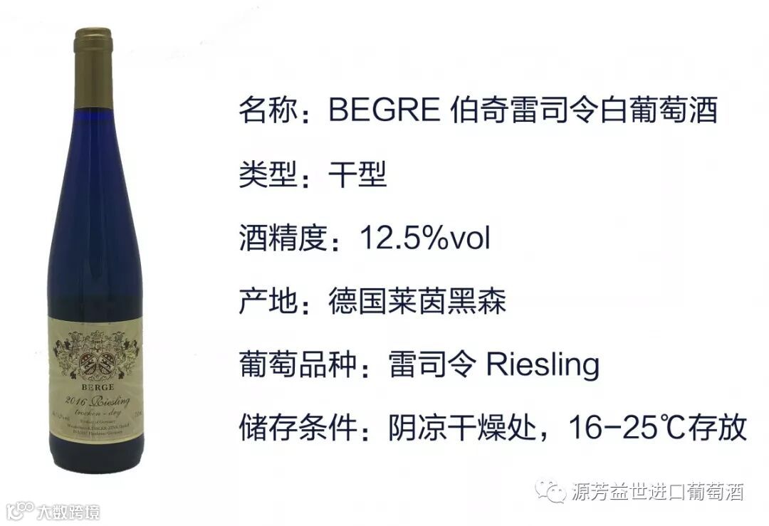 伯奇雷司令白葡萄酒,这款酒的颜值我觉得是挺抗打的,蓝色海洋瓶体,高端奢华,酒体圆润,酸甜度平衡,多样化的口味,典型的辛辣和果酸味,伴随着热带水果与新鲜的蜂蜜味。产自德国莱茵黑森,酒精度为12.5%vol。适合与甜点、海鲜、意面、牛排搭配饮用。