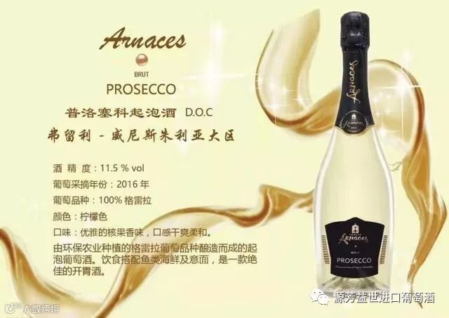 普洛塞科产自意大利东北部的威尼托(Veneto)地区,是由格雷拉葡萄酿制而成的。格雷拉酿造而成的普洛塞科带有白色花朵、苹果、梨和柠檬的风味,酒体轻盈,风格优雅,年轻易饮。