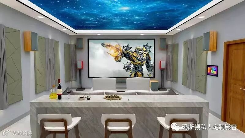 一般来说,做家庭影院房间30-40平米为佳,墙面通常是根据“前壁要硬、左右侧墙要吸音、背墙得扩散”的原则来装饰之所以说前墙要做得硬,这是出于可以保存一定的低频,使低频能更好的向前延伸而考虑的;左右侧墙一定要做吸音处理,这样可以确保声音定位清晰、音质纯净,可在音箱与聆听位置之间的侧墙上设置一些厚绒布或羊毛毯画等;而墙角是驻波的地方,地墙角摆放书架、CD架等特件能对声音有很大的帮助;聆听位置的后墙处理成吸音和扩散均可。
