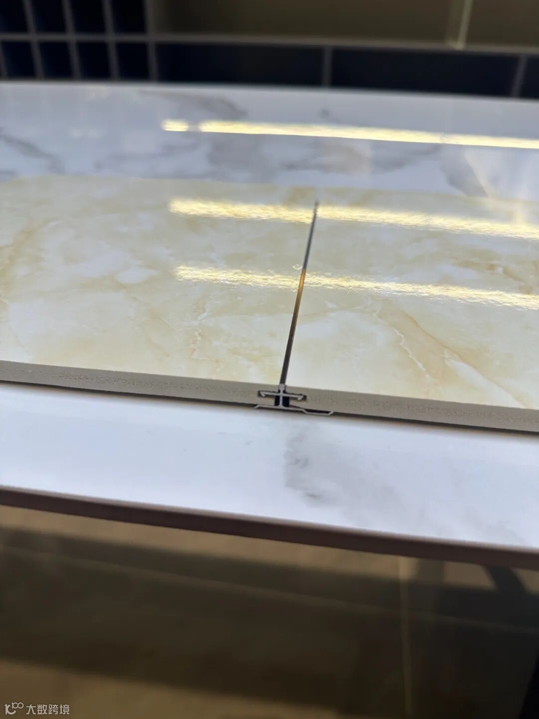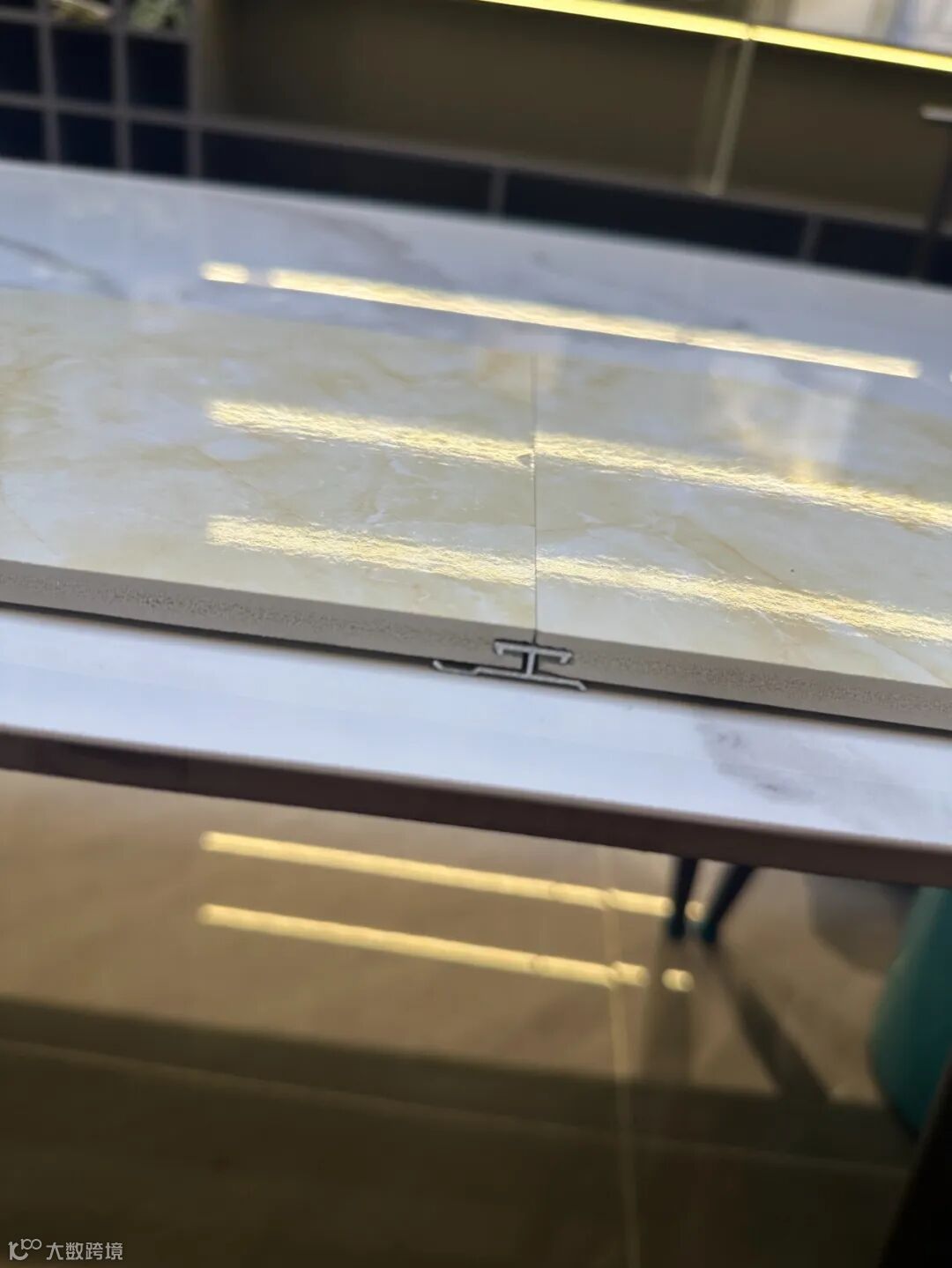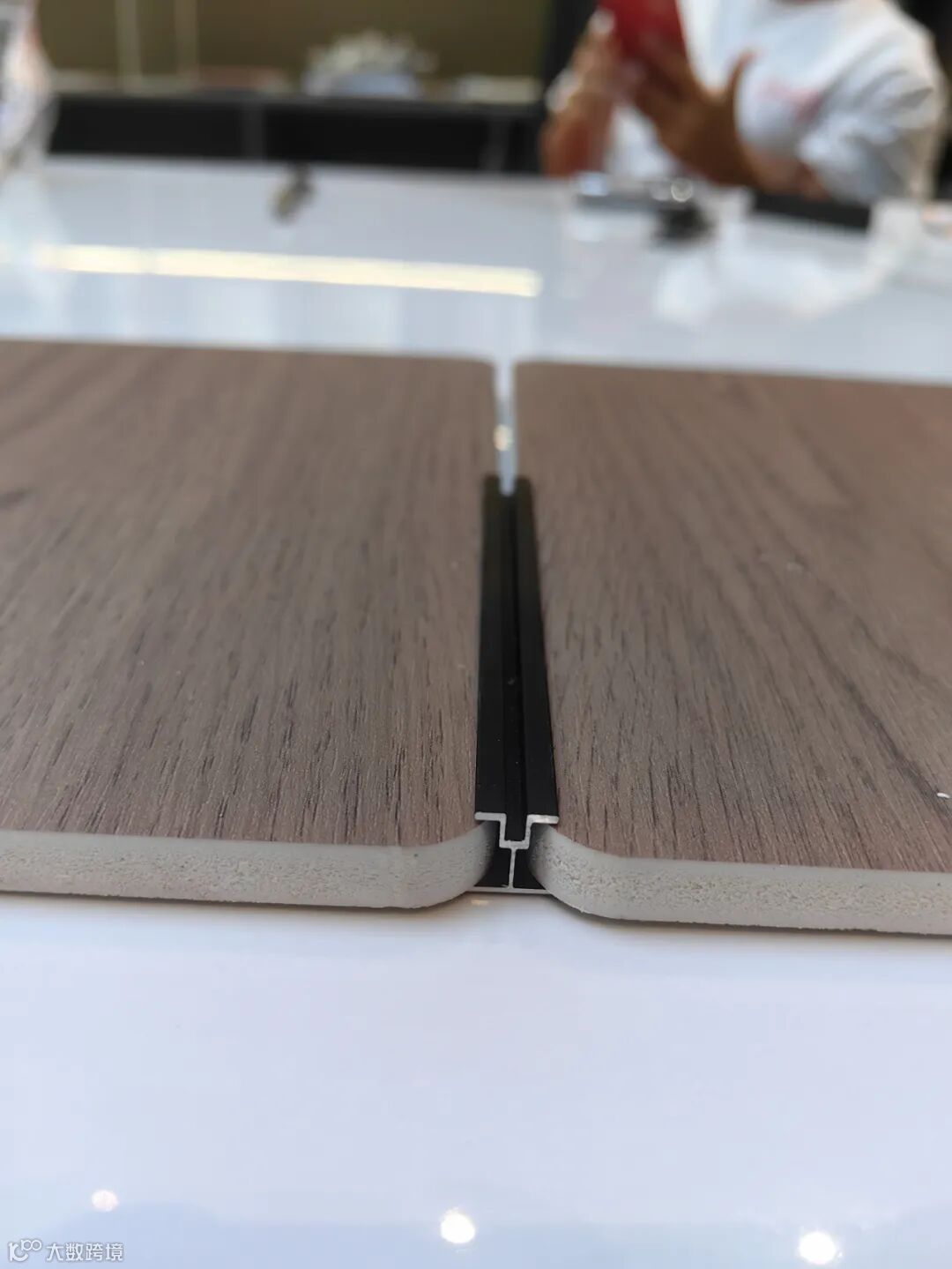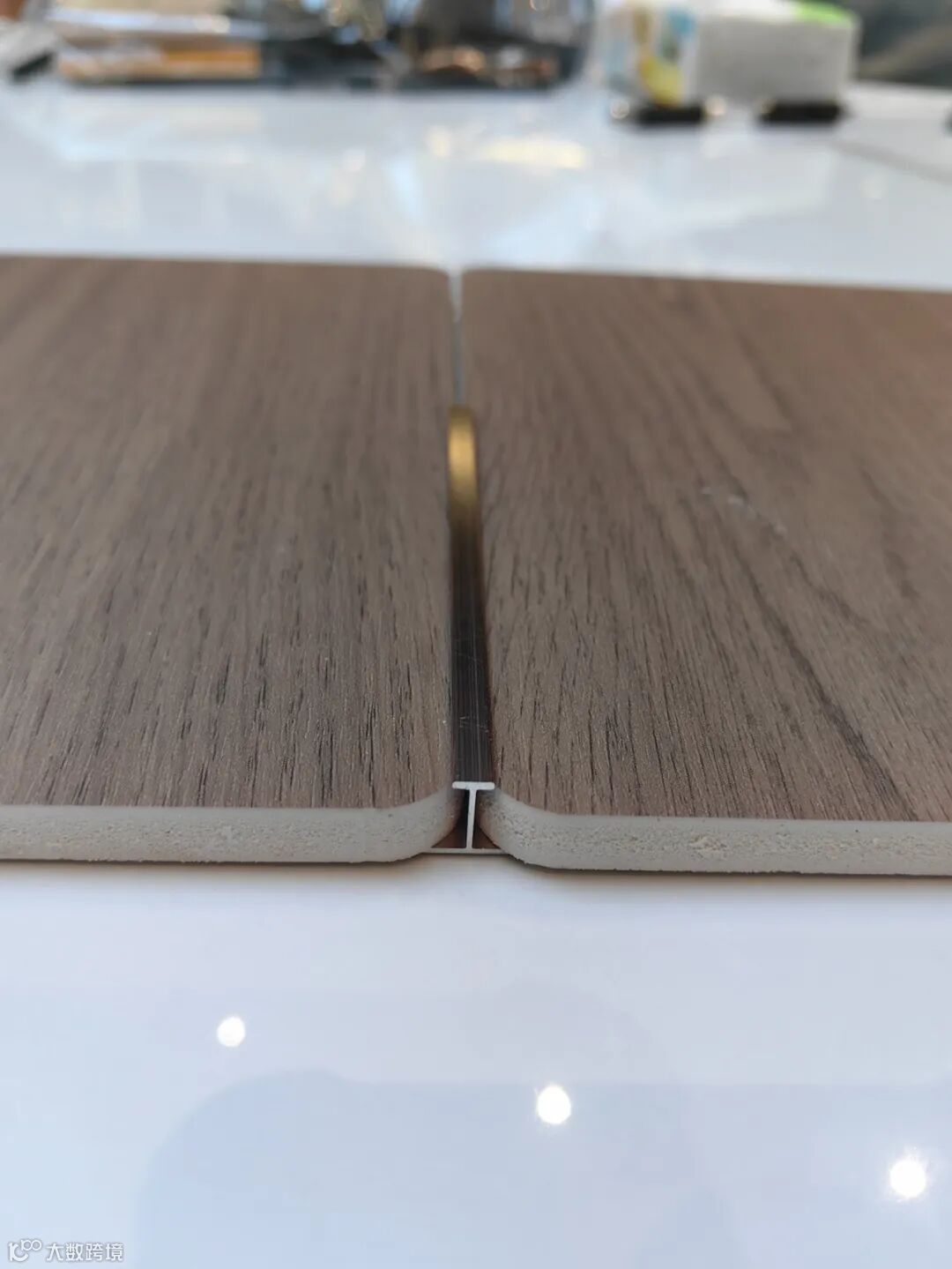 石晶板的拼接方式,除了使用工字条,还有上图这种公母槽拼接。