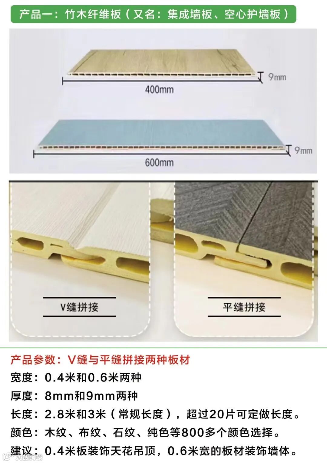 竹木纤维板,宽度有两种,600宽与400宽,质量较好的是蝴蝶孔,性价比较高的是大小孔