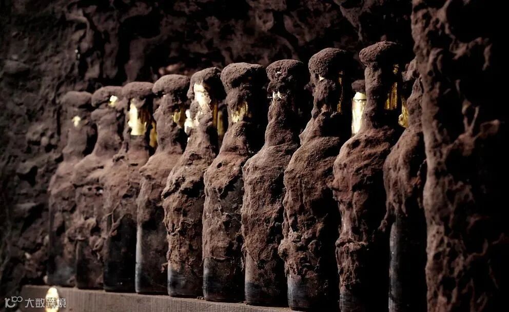 如上图这些酒瓶,它们的酿造日期可以追溯到 1912 年,瓶子上长了霉菌,它们靠汲取葡萄酒挥发的酒液滋生。这个特殊的酒窖为世界各地的总统和皇室成员提供葡萄酒。