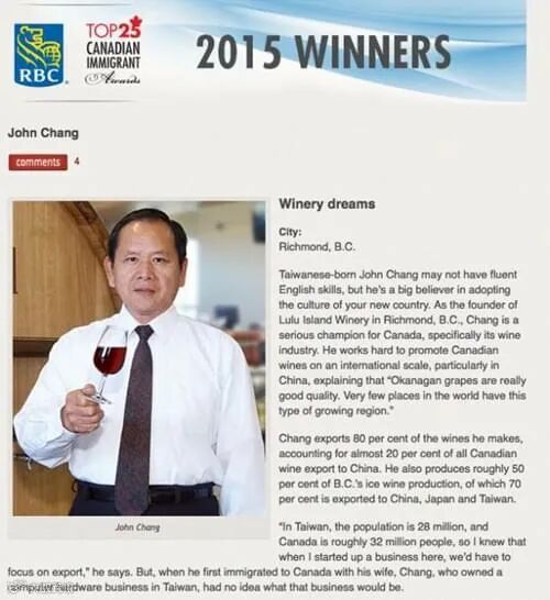 而他经营的鹭岛酒庄位于BC省列治文,在本地也颇有名气,是最大的冰酒酿酒厂和出口商,酒庄产量约占全省7成,更是本地对中国冰酒出口的龙头,无论是酒庄还是品牌都获得不少奖项。