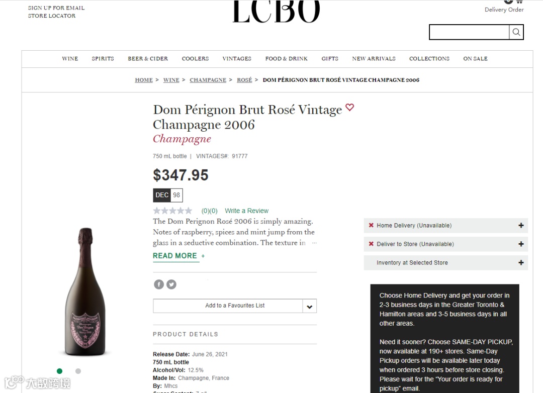 而我们发现在LCBO官网上也有同款香槟,