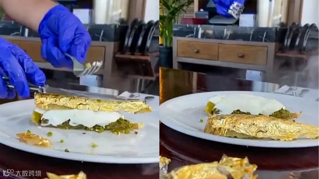 这个号称24k的黄金牛排是由一张食用金箔包裹的,