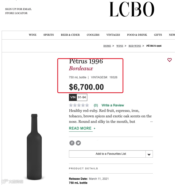 同样在LCBO官网和其他网站上,