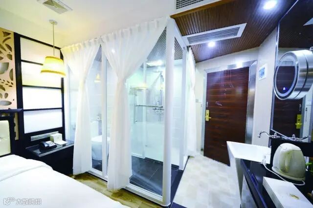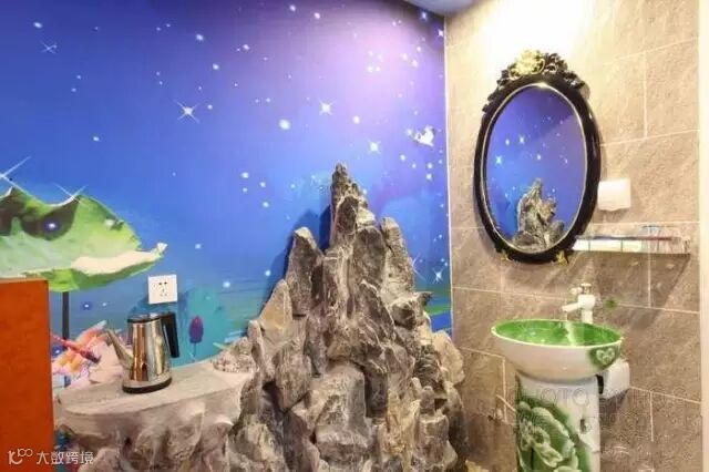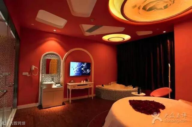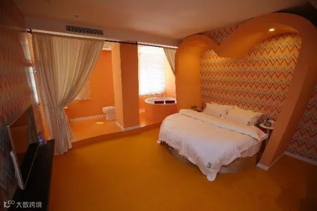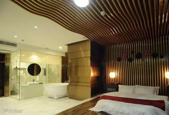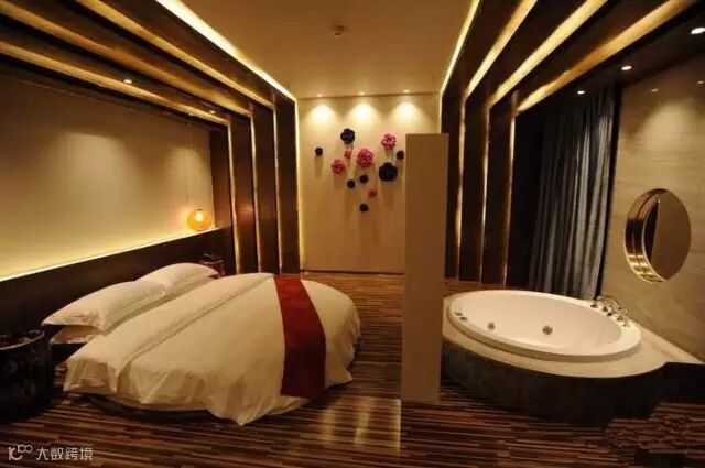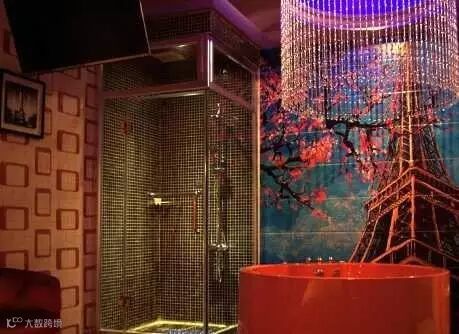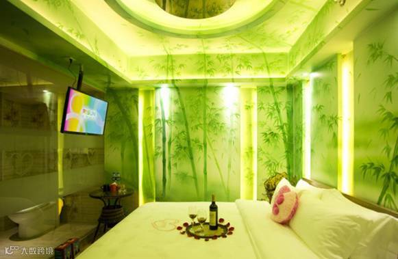 竹林风、海洋风、桃花风、爱的隧道...基本每个房间都有不同主题,灯光比较柔和,有一个浴盆可以泡澡。