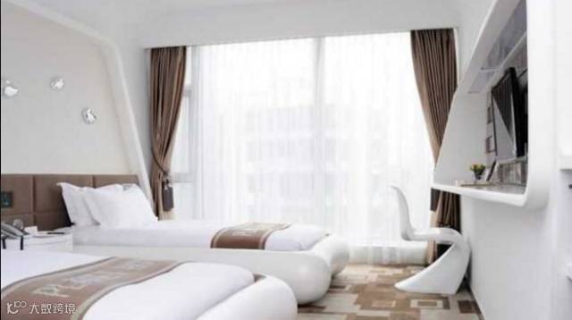 一件新派的酒店,装修风格是太空系列,房间和洗手间像太空舱,好玩!房间内都是智能化触摸式开关,比较先进。